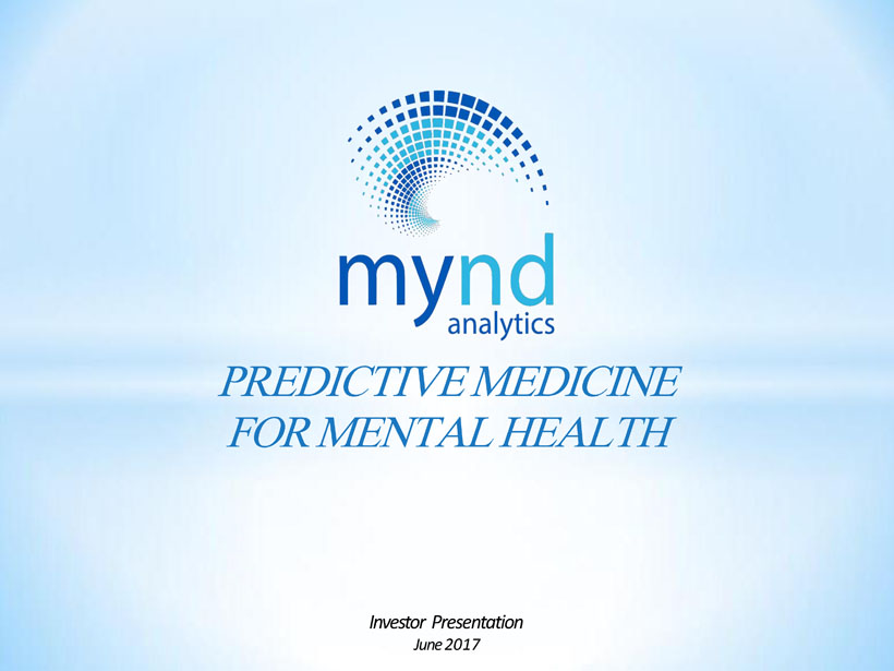 PREDICTIVE MEDICINE FOR MENTAL HEALTH Investor Presentation June 2017